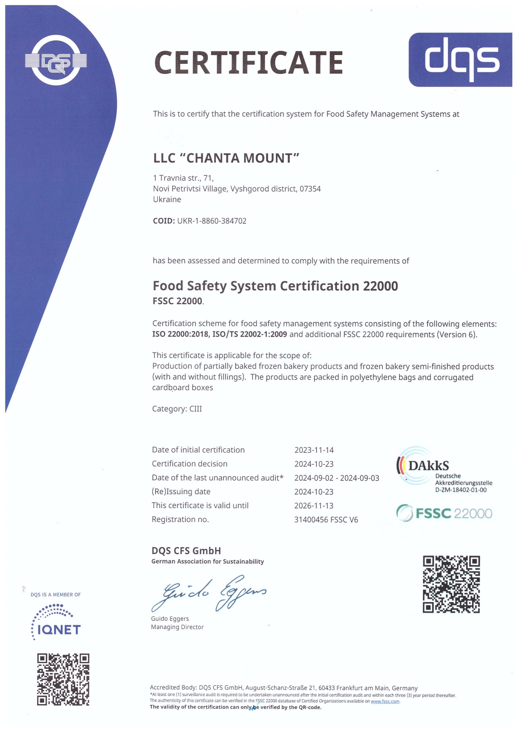 Certification according to FSSC 22000 (Food Safety System Certification 22000) is an internationally recognized food safety management system certification scheme based on the ISO series of standards and approved by the Global Food Safety Initiative (GFSI) and the European Accreditation Cooperation (EA).